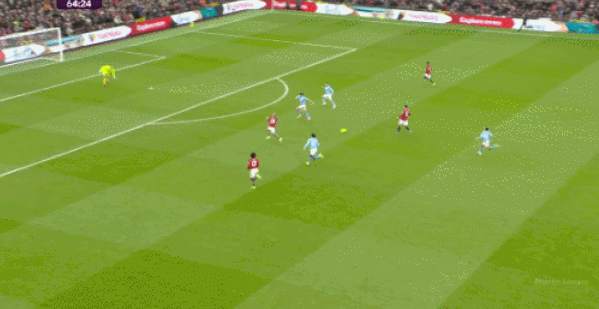 第65分钟,曼联反击机会,姆伯莫破门,B费送助攻,曼联1-0领先曼城。